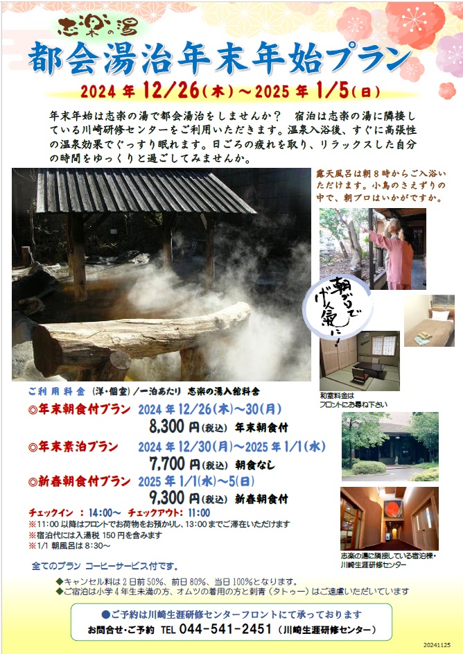 志楽の湯 都会湯治年末年始プランのお知らせ